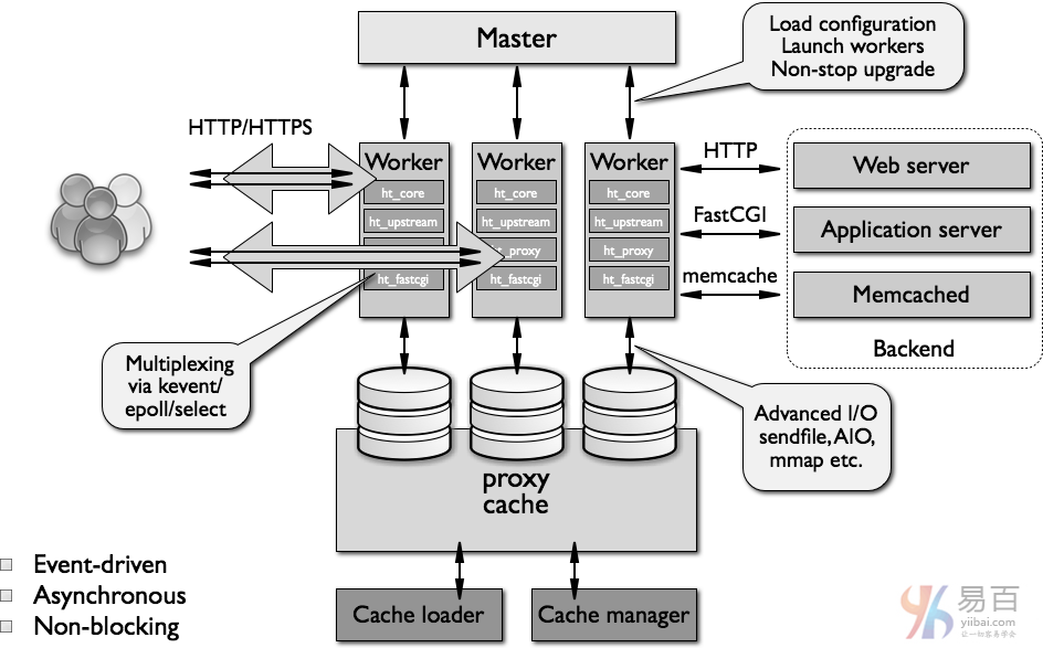 nginx架構(gòu)的高級概述如下圖所示 -