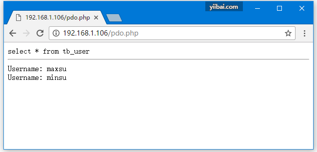 將文件:pdo.php 放到 /usr/local/nginx/html 目錄下,打開瀏覽器訪問(wèn)測(cè)試結(jié)果如下 -