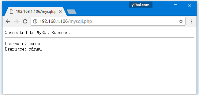 將文件:mysqli.php 放到 /usr/local/nginx/html 目錄下,打開瀏覽器訪問(wèn)測(cè)試結(jié)果如下 -