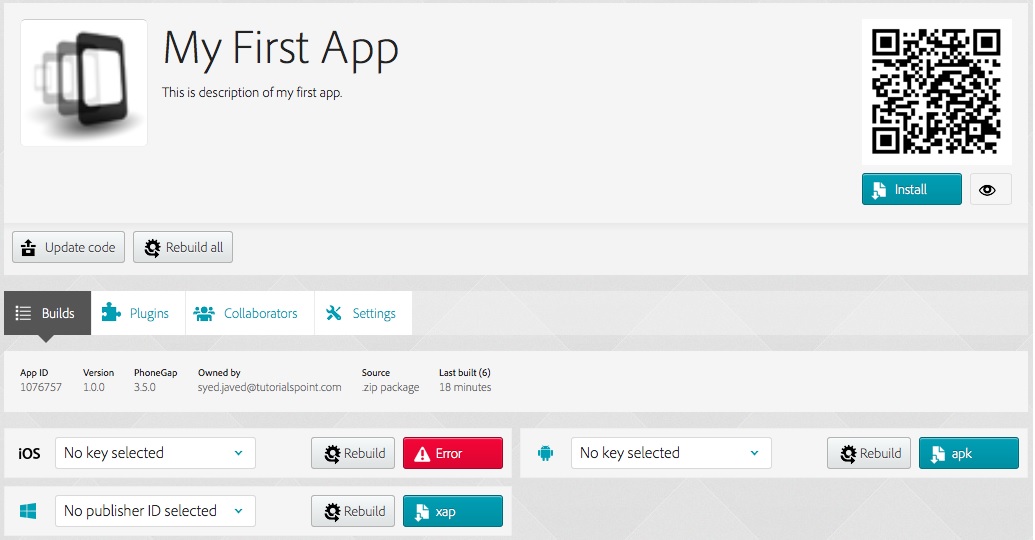 填寫(xiě)詳細(xì)信息,然后點(diǎn)擊注冊(cè)?,F(xiàn)在,可以登錄使用相同的用戶(hù)ID的PhoneGap。默認(rèn)情況下,這個(gè)頁(yè)面應(yīng)該由PhoneGap控制臺(tái)顯示如下: