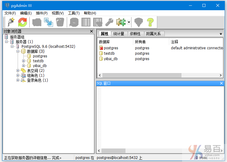 打開pgAdmin并將PostgreSQL連接到本地主機服務(wù)器。點擊加號圖標展開數(shù)據(jù)庫。