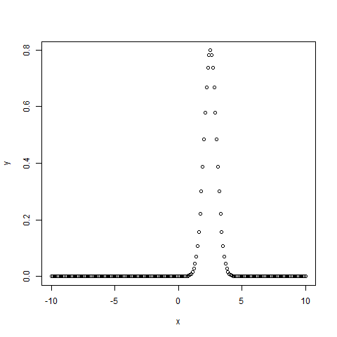y <- dnorm(x, mean = 2.5, sd = 0.5)