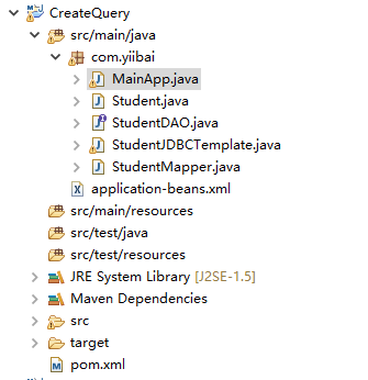 insertQuery - 具有占位符的插入語句。jdbcTemplateObject - StudentJDBCTemplate 對象將 Student 對象插入到數(shù)據(jù)庫中。要了解上面提到的Spring JDBC相關(guān)的概念,這里創(chuàng)建一個項目用來演示插入數(shù)據(jù)到數(shù)據(jù)庫表的示例。使用Eclipse IDE,并按照以下步驟創(chuàng)建一個名稱為:CreateQuery 的Spring應(yīng)用程序項目: