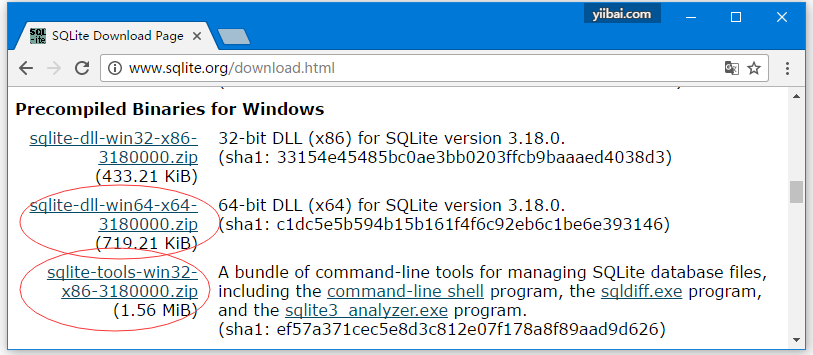 打開SQLite官方網(wǎng)站,轉(zhuǎn)到下載頁(yè)面 - http://www.sqlite.org/download.html 并下載預(yù)編譯的Windows二進(jìn)制文件。