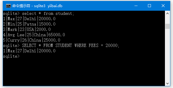 使用SQLite布爾表達式的簡單示例,如下所示 -