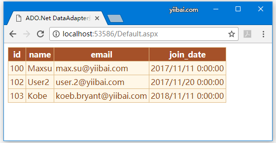 打開 Visual Studio 創(chuàng)建一個網(wǎng)站項目,一個ASP.NET空的網(wǎng)站:AdoNetDataAdapter,如下所示 -