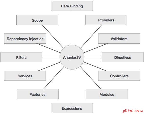 下圖描述了AngularJS,我們將詳細的后續(xù)章節(jié)討論一些重要的部分。
