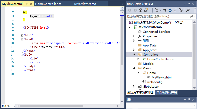 下面通過創(chuàng)建一個(gè)新的ASP.NET MVC項(xiàng)目,來演示如何應(yīng)用視圖的簡單例子。