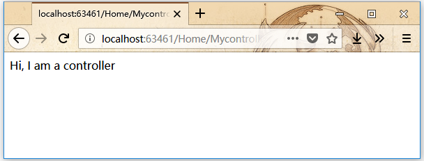 運(yùn)行這個(gè)應(yīng)用程序,打開瀏覽器訪問:http://localhost:63461/Home/MyController,將收到以下輸出結(jié)果 -