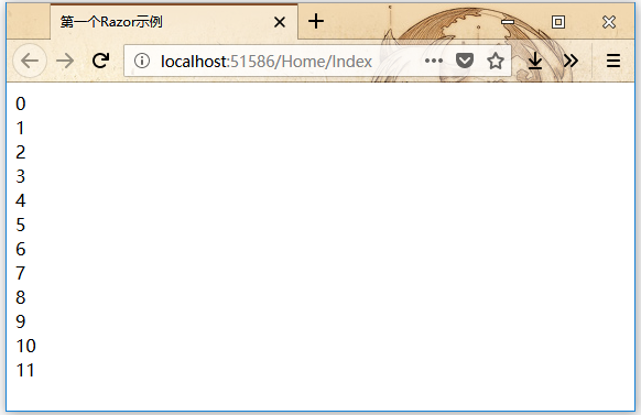 創(chuàng)建一個FOR循環(huán),在大括號內(nèi)指定@index,這實質(zhì)上是告訴 Razor 存儲變量index的值。