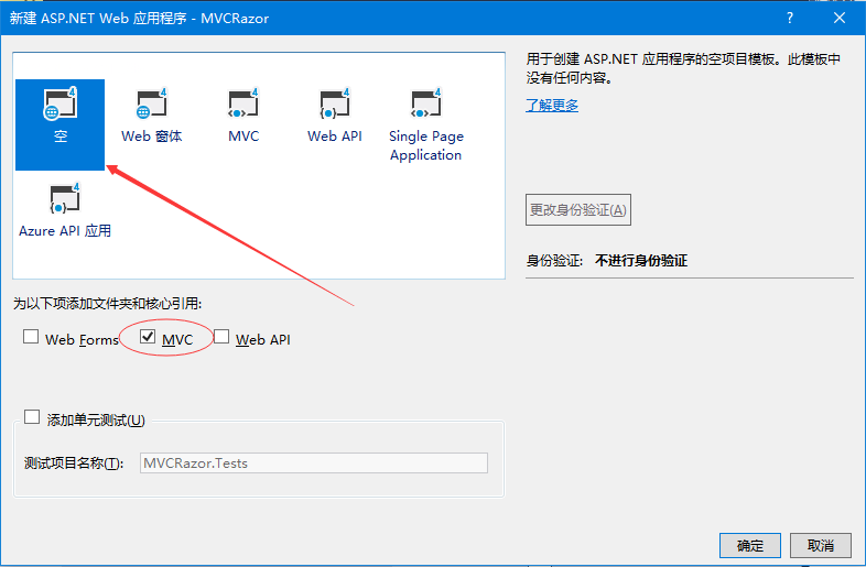 在名稱字段中輸入項目的名稱:MVCRazor,然后單擊確定。如下圖所示 -