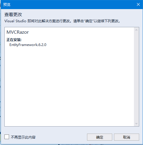 第3步 - 選擇實體框架(Entity Framework),然后點擊“安裝”按鈕。 它將打開預覽對話框。