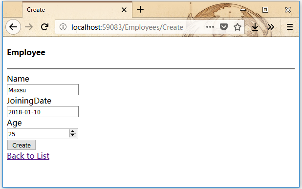 public ActionResult Create([Bind(Include = "ID,Name,JoiningDate,Age")] Employee employee)