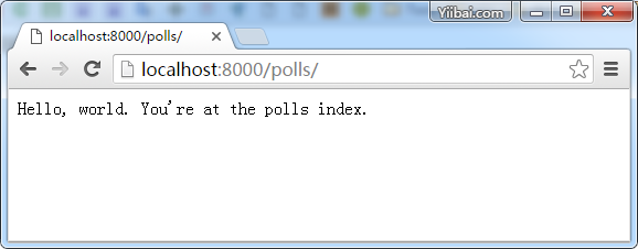 在瀏覽器中打開http://localhost:8000/polls/,應(yīng)該看到如下文字顯示: “Hello, world. You’re at the polls index.”, 在 index 視圖中所定義。