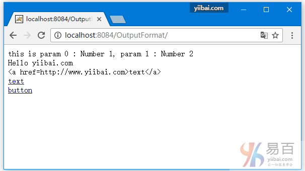 public String htmlInput = "<a href='http://www.yiibai.com'>{0}</a>";