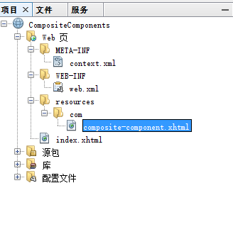 打開NetBeans IDE創(chuàng)建一個(gè)名稱為:CompositeComponents 的Web工程,其完整的目錄結(jié)構(gòu)如下所示 -