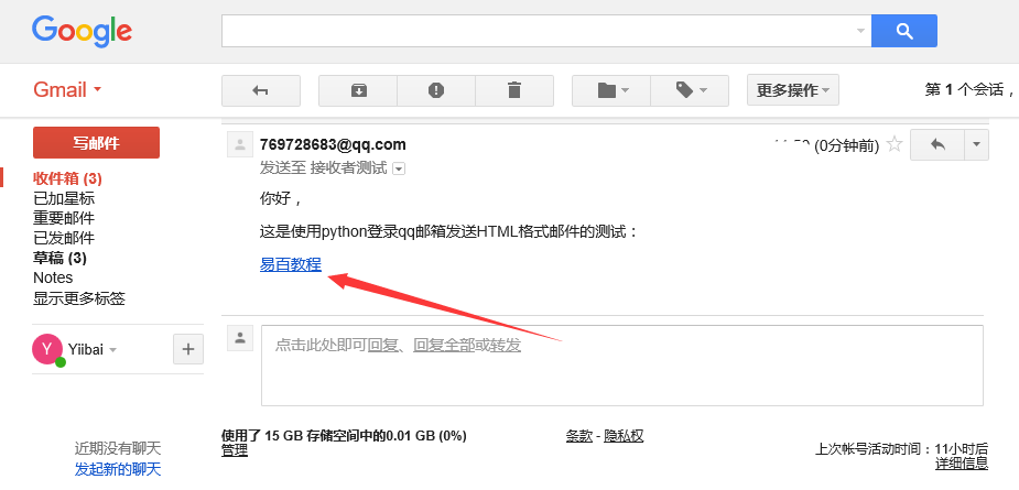 mail_content = "你好,<p>這是使用python登錄qq郵箱發(fā)送HTML格式郵件的測(cè)試:</p><p><a href='http://www.yiibai.com'>易百教程</a></p>"