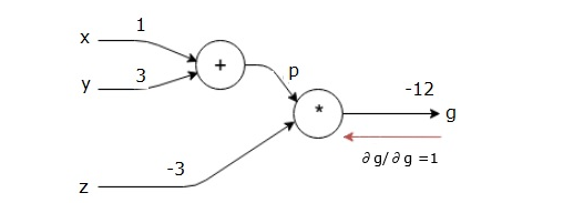 接下來,我們將通過“*”操作進行反向傳遞。將計算p和z處的梯度。 由于g = p * z,所以可以知道 -