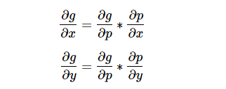 但是已經(jīng)知道dg/dp = -3,dp/dx和dp/dy很容易,因為p直接取決于x和y。如下公式 -