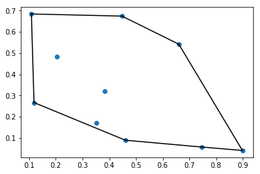 plt.plot(points[simplex,0], points[simplex,1], 'k-')