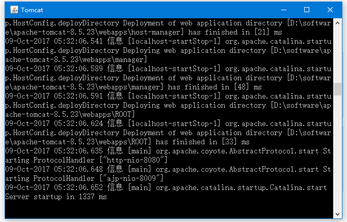 D:\software\apache-tomcat-8.5.23\bin> startup.bat