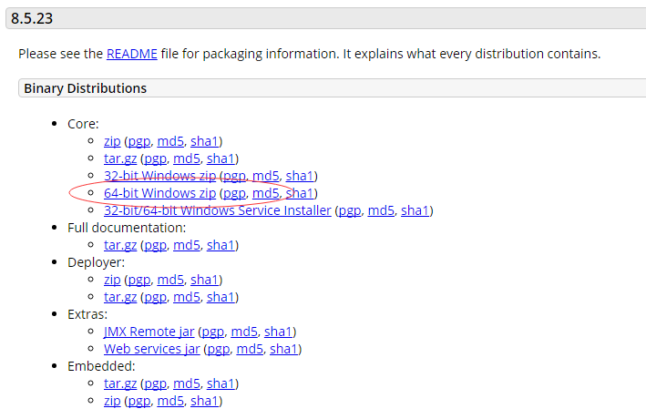 打開網(wǎng)址: http://tomcat.apache.org/download-80.cgi 下載 apache-tomcat-8.5.23-windows-x64.zip ,如下圖所示 -
