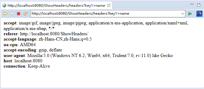 在本示例中,我們調(diào)用ServletRequest接口的getHeaderNames()方法,該方法返回包含所有頭名稱的Enumeration對(duì)象。通過調(diào)用getHeader()方法來獲取和顯示所有的報(bào)頭值。下面來看一個(gè)例子: