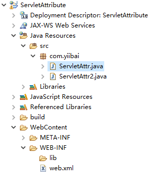 打開Eclipse創(chuàng)建一個動態(tài)Web項目:ServletAttribute ,其完整的項目結(jié)構(gòu)如下所示 -