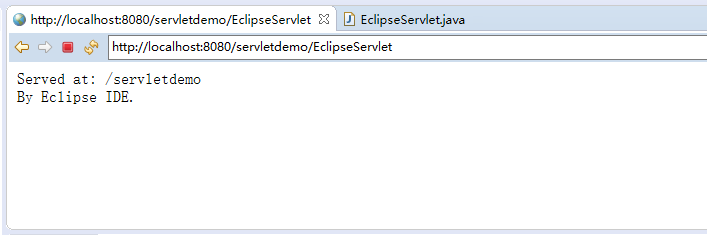 可以看到 Eclipse 中已經(jīng)自動啟動Tomcat服務器在8080端口上,并打內(nèi)置的瀏覽器訪問URL: http://localhost:8080/servletdemo/ ,如下圖所示 -