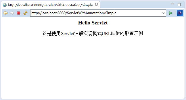 在編寫上面代碼后,部署此Web應(yīng)用程序(在項目名稱上點(diǎn)擊右鍵->”Run On Server…”),打開瀏覽器訪問URL: http://localhost:8080/ServletWithAnnotation/ ,如果沒有錯誤,應(yīng)該會看到以下結(jié)果 -