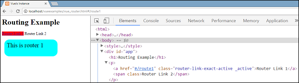 執(zhí)行示例并查看瀏覽器中的顯示。 在檢查和檢查路由器鏈路時(shí),發(fā)現(xiàn)它將類添加到活動(dòng)元素,如下面的截圖所示 -