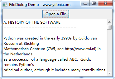 Mywin(None, 'FileDialog Demo - www.yiibai.com')