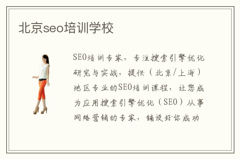 SEO培訓專家,專注搜索引擎優(yōu)化研究與實戰(zhàn),提供(北京/上海)地區(qū)專業(yè)的SEO培訓課程,讓您成為應用搜索引擎優(yōu)化(SEO)從事網(wǎng)絡營銷的專家,鋪設好你成功的網(wǎng)絡商業(yè)