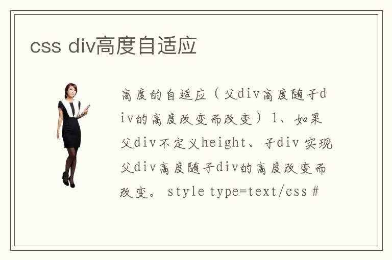 高度的自適應(yīng)(父div高度隨子div的高度改變而改變) 1、如果父div不定義height、子div 實(shí)現(xiàn)父div高度隨子div的高度改變而改變。 < style type ="text/css" > #aa { min-height 1