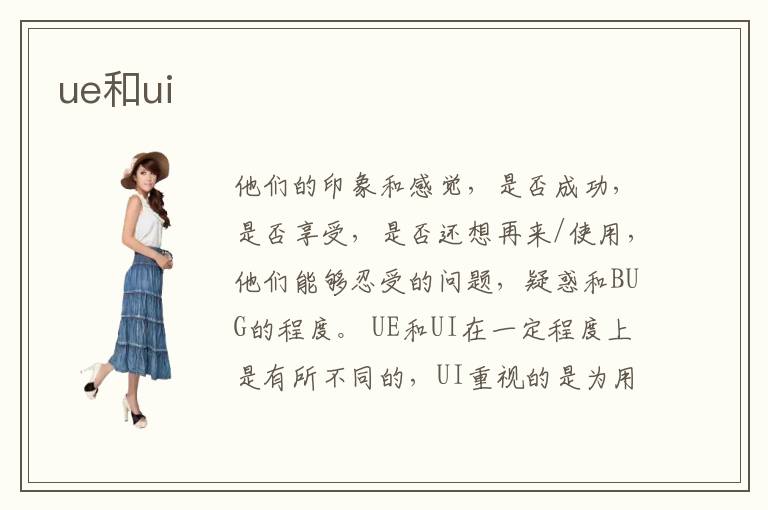 他們的印象和感覺(jué),是否成功,是否享受,是否還想再來(lái)/使用,他們能夠忍受的問(wèn)題,疑惑和BUG的程度。 UE和UI在一定程度上是有所不同的,UI重視的是為用戶提供良好的感觀