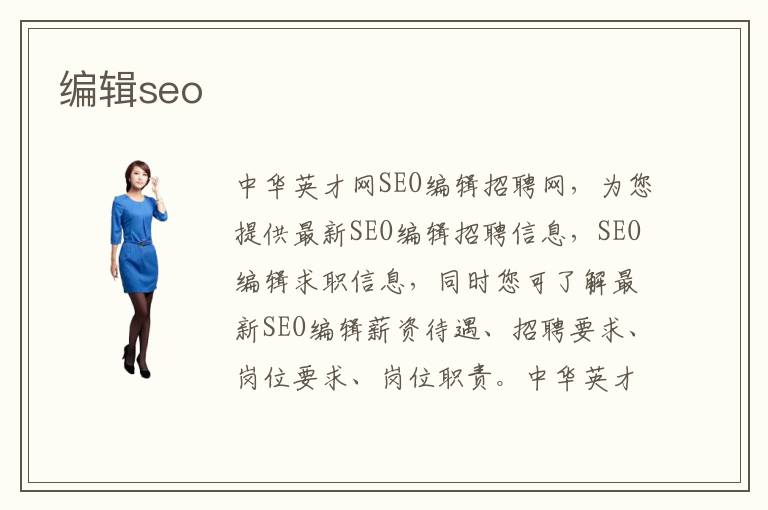 中華英才網(wǎng)SEO編輯招聘網(wǎng),為您提供最新SEO編輯招聘信息,SEO編輯求職信息,同時(shí)您可了解最新SEO編輯薪資待遇、招聘要求、崗位要求、崗位職責(zé)。中華英才網(wǎng)是您招聘