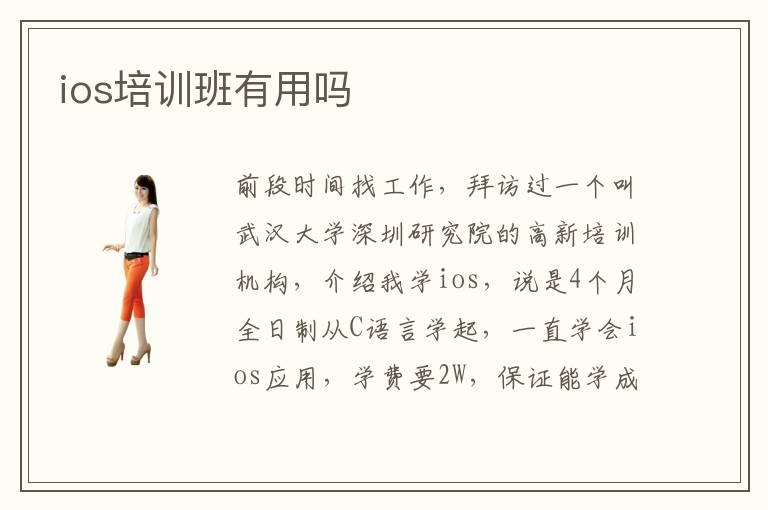 前段時間找工作,拜訪過一個叫武漢大學(xué)深圳研究院的高新培訓(xùn)機構(gòu),介紹我學(xué)ios,說是4個月全日制從C語言學(xué)起,一直學(xué)會ios應(yīng)用,學(xué)費要2W,保證能學(xué)成就業(yè),但是本人以