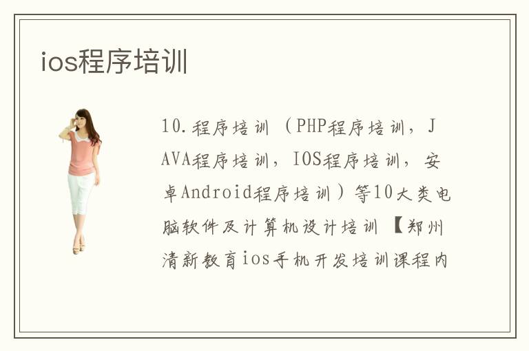 10.程序培訓(xùn) (PHP程序培訓(xùn),JAVA程序培訓(xùn),IOS程序培訓(xùn),安卓Android程序培訓(xùn))等10大類(lèi)電腦軟件及計(jì)算機(jī)設(shè)計(jì)培訓(xùn) 【鄭州清新教育ios手機(jī)開(kāi)發(fā)培訓(xùn)課程內(nèi)容】 0. 前言 0.