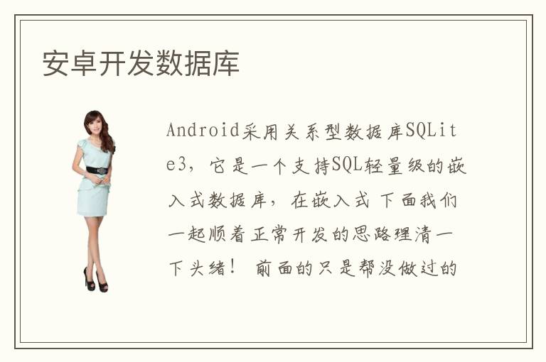 Android采用關(guān)系型數(shù)據(jù)庫SQLite3,它是一個支持SQL輕量級的嵌入式數(shù)據(jù)庫,在嵌入式 下面我們一起順著正常開發(fā)的思路理清一下頭緒! 前面的只是幫沒做過的朋友做下普及,