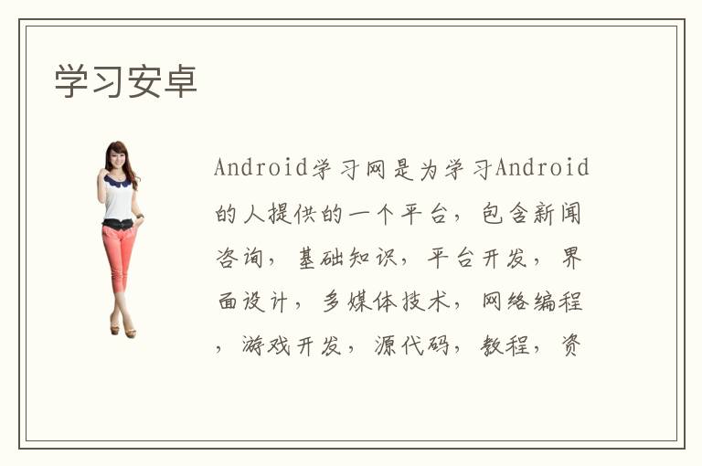 Android學(xué)習(xí)網(wǎng)是為學(xué)習(xí)Android的人提供的一個(gè)平臺(tái),包含新聞咨詢,基礎(chǔ)知識(shí),平臺(tái)開發(fā),界面設(shè)計(jì),多媒體技術(shù),網(wǎng)絡(luò)編程,游戲開發(fā),源代碼,教程,資料下載,在線文