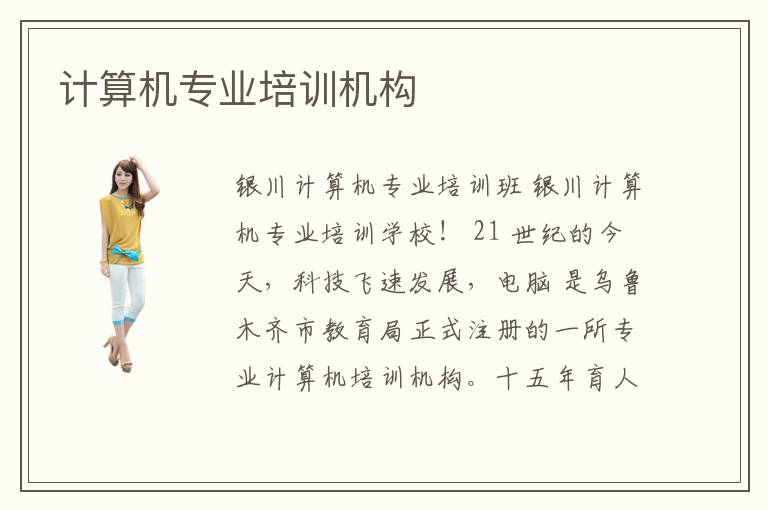 銀川計算機專業(yè)培訓班 銀川計算機專業(yè)培訓學校! 21 世紀的今天,科技飛速發(fā)展,電腦 是烏魯木齊市教育局正式注冊的一所專業(yè)計算機培訓機構(gòu)。十五年育人,碩果斐然, 唐老