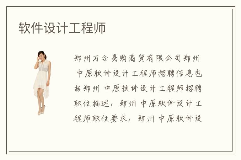 鄭州萬合易購商貿(mào)有限公司鄭州 中原軟件設(shè)計(jì)工程師招聘信息包括鄭州 中原軟件設(shè)計(jì)工程師招聘職位描述,鄭州 中原軟件設(shè)計(jì)工程師職位要求,鄭州 中原軟件設(shè)計(jì)工程師職位薪