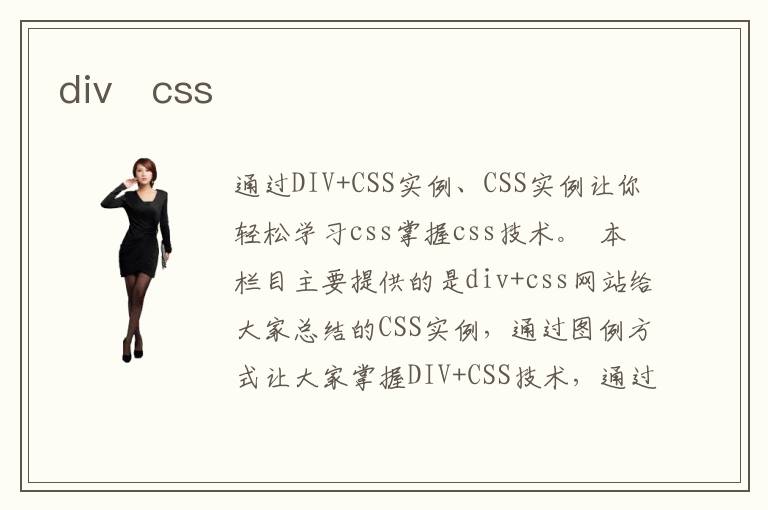 通過DIV+CSS實(shí)例、CSS實(shí)例讓你輕松學(xué)習(xí)css掌握css技術(shù)。 本欄目主要提供的是div+css網(wǎng)站給大家總結(jié)的CSS實(shí)例,通過圖例方式讓大家掌握DIV+CSS技術(shù),通過這些DIV+CSS實(shí)例