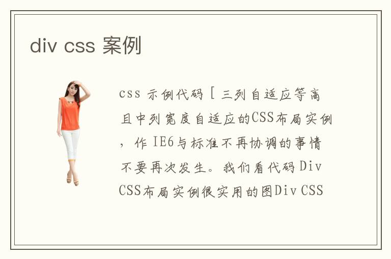 css 示例代碼 [ 三列自適應(yīng)等高且中列寬度自適應(yīng)的CSS布局實例,作 IE6與標(biāo)準(zhǔn)不再協(xié)調(diào)的事情不要再次發(fā)生。我們看代碼 DivCSS布局實例很實用的圖