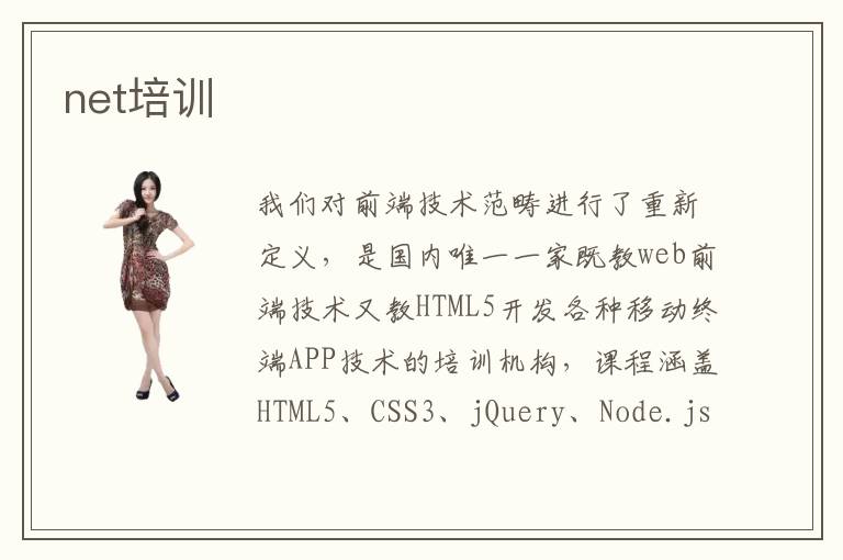 我們對前端技術(shù)范疇進行了重新定義,是國內(nèi)唯一一家既教web前端技術(shù)又教HTML5開發(fā)各種移動終端APP技術(shù)的培訓(xùn)機構(gòu),課程涵蓋HTML5、CSS3、jQuery、Node.js、Canvas