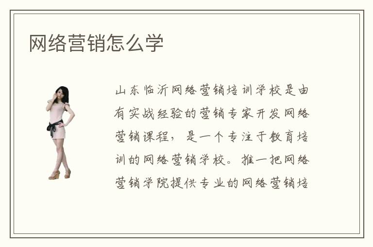 山東臨沂網(wǎng)絡營銷培訓學校是由有實戰(zhàn)經(jīng)驗的營銷專家開發(fā)網(wǎng)絡營銷課程,是一個專注于教育培訓的網(wǎng)絡營銷學校。