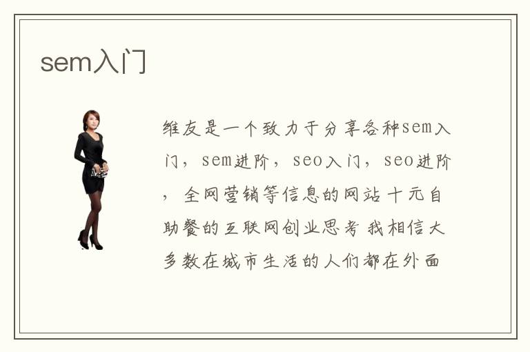 維友是一個(gè)致力于分享各種sem入門,sem進(jìn)階,seo入門,seo進(jìn)階,全網(wǎng)營(yíng)銷等信息的網(wǎng)站 十元自助餐的互聯(lián)網(wǎng)創(chuàng)業(yè)思考 我相信大多數(shù)在城市生活的人們都在外面吃過自助餐,