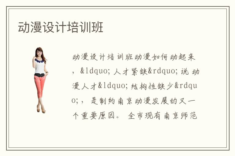 動漫設計培訓班動漫如何動起來,“人才緊缺”說 動漫人才“結構性缺少”,是制約南京動漫發(fā)展的又一個重要原因。 全市現(xiàn)有南京師范大學、南京藝術學院、金陵科技