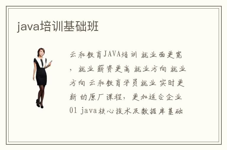 課程名稱java基礎(chǔ)班招生對象熱愛軟件編程,有意向成為優(yōu)秀的Java軟件工程師的朋友們,同時建議最好是理工科大?;虼髮R陨蠈W(xué)歷,有一定英語基礎(chǔ),能閱讀簡單的
