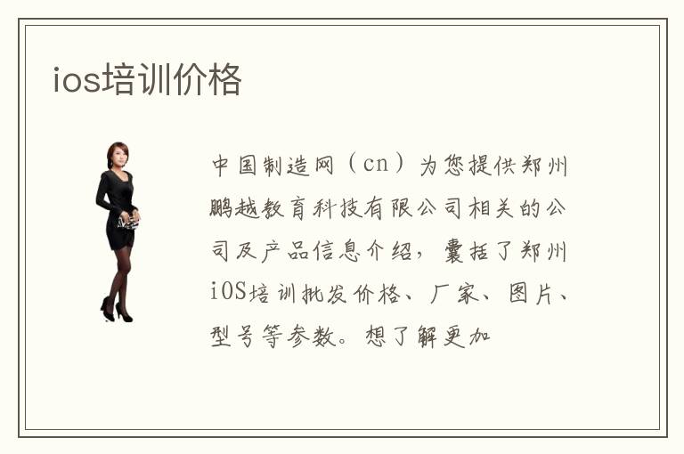 中國制造網(wǎng)(cn)為您提供鄭州鵬越教育科技有限公司相關(guān)的公司及產(chǎn)品信息介紹,囊括了鄭州iOS培訓(xùn)批發(fā)價格、廠家、圖片、型號等參數(shù)。想了解更加